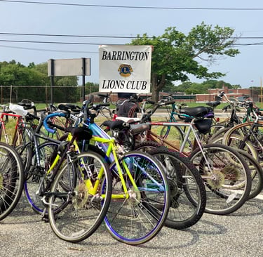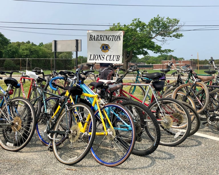 The Barrington Lions Club keeps old bikes out of the landfill. We collect unwanted bicycles for Recycle a Bike and the Red Shed, run by the Woonasquatucket River Watershed Council, where they are restored for students, city youth, newly arrived refugees, and others.